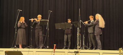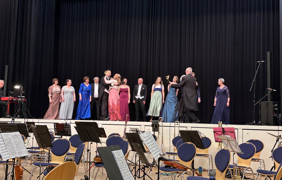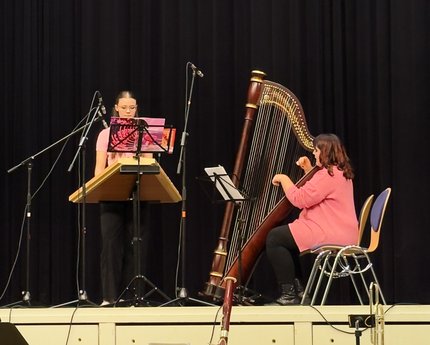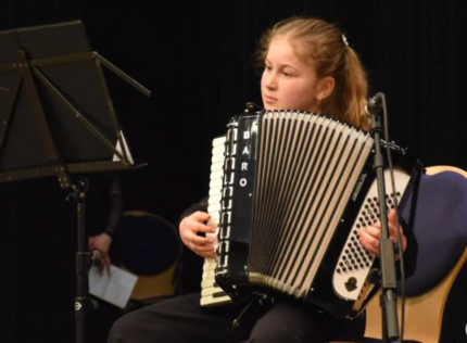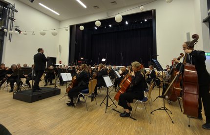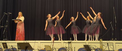 Frauenpower gab es auch durchwegs häufig auf der Bühne mit Solo-Beiträgen an Instrumenten, einer humorigen Vorstellung des Musiktheaters mit einer kleinen Aufführung, dem Ballett und den Chören. In den Gruppen, wie Orchester, Gitarrenensemble, Streichquartett oder Akkordeonorchester, wirken auch viele Musiker, darunter viele junge Männer, mit. Mit einem Geburtstagsständchen des Akkordeonorchesters begann das Konzert. Mit "Wein, Weib und Gesang" von Johann Strauß Sohn, interpretiert vom Symphonieorchester, endete es. Gefeiert wurden MUT, die KMS und die wohl bisher größte Förderin der Kreismusikschule, Theodora Kupke, für ihr großartiges Engagement.