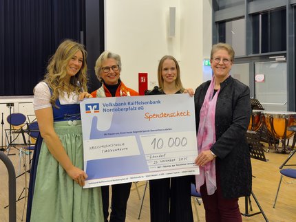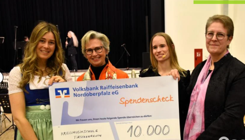 Theodora Kupke überreichte an die KMS-Leiterin Laura Demjan einen Scheck in Höhe von 10.000 Euro als Spende von MUT, der zweckgebunden für Musikinstrumente und Technik verwendet werden kann. Außerdem stellte Kupke, die bei der nächsten MUT-Jahreshauptversammlung ihr Amt niederlegt, ihre Nachfolgerin vor. Es ist Julia Thoma aus Wiesau. Die Kreisrätin ist die längste Kreismusikschülerin der KMS und hat vor einigen Jahren den stellvertretenden Vorsitz von MUT übernommen.