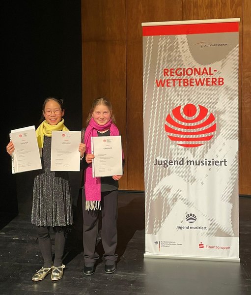 Auch im Fach Gitarre stellten Schülerinnen ihr Können in Regensburg eindrucksvoll unter Beweis. Lina Klink erspielte sich einen 1. Preis mit 21 Punkten, Johanna Kastner erhielt einen 2. Preis mit 20 Punkten. Beide wurden von ihrem Gitarrenlehrer Ctibor Süsser bestens auf den Wettbewerb vorbereitet.