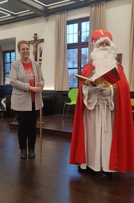 Am Ende des Konzerts kam als Überraschungsgast der Nikolaus vorbei, und überreichte den Kindern für ihren wunderbaren Vortrag ein kleines Geschenk.