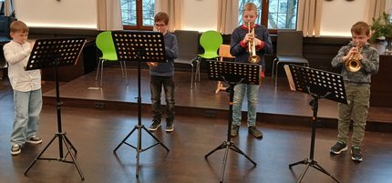 Eröffnet wurde das Konzert musikalisch vom Trompetenensemble der KMS-Lehrkraft Miguel López Alvarez mit der feierlichen Darbietung von „Wir sagen euch an den lieben Advent“.