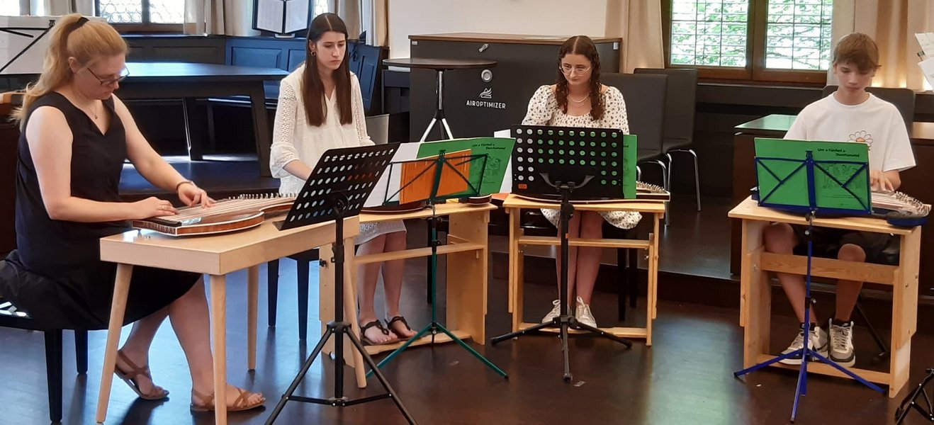 Zither, Hackbrett und Harfe sorgten für ein beschwingtes Vorspiel im großen Sitzungsaal des Landratsamtes. Ob Klassik, Volkslieder, Polka oder Modernes, die Schüler zeigten versiert, was sie auf Ihren Instrumenten gelernt haben. Mehrere Duos und Ensembles spielten routiniert zusammen. Ergänzt wurde das Vorspiel durch eine Klavierschülerin.